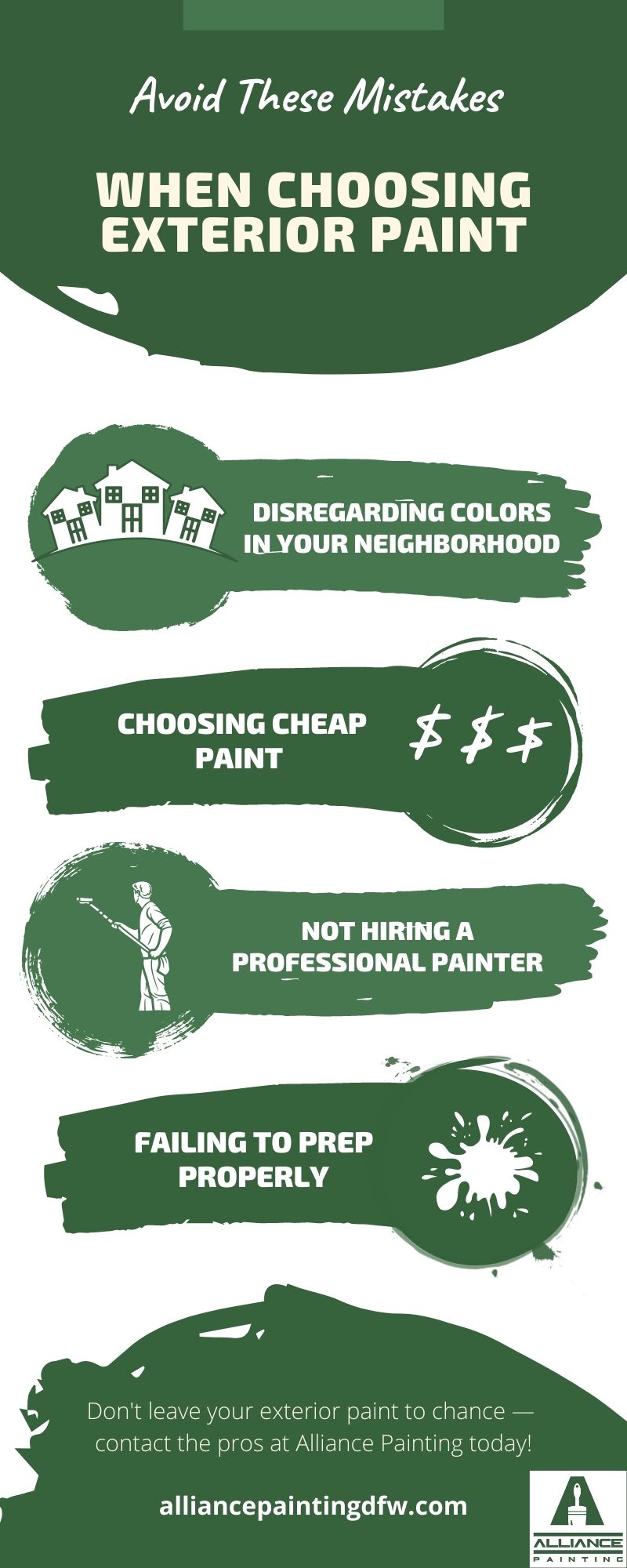 At Alliance Painting, our goal is to be the exterior painting company you turn to when you need to be certain the work gets done the right way. We bring years of experience to each project, and that means we know what to look for in order to ensure its success. So what mistakes can you avoid when choosing exterior paint? Find out below, then contact us today for your exterior painting needs.